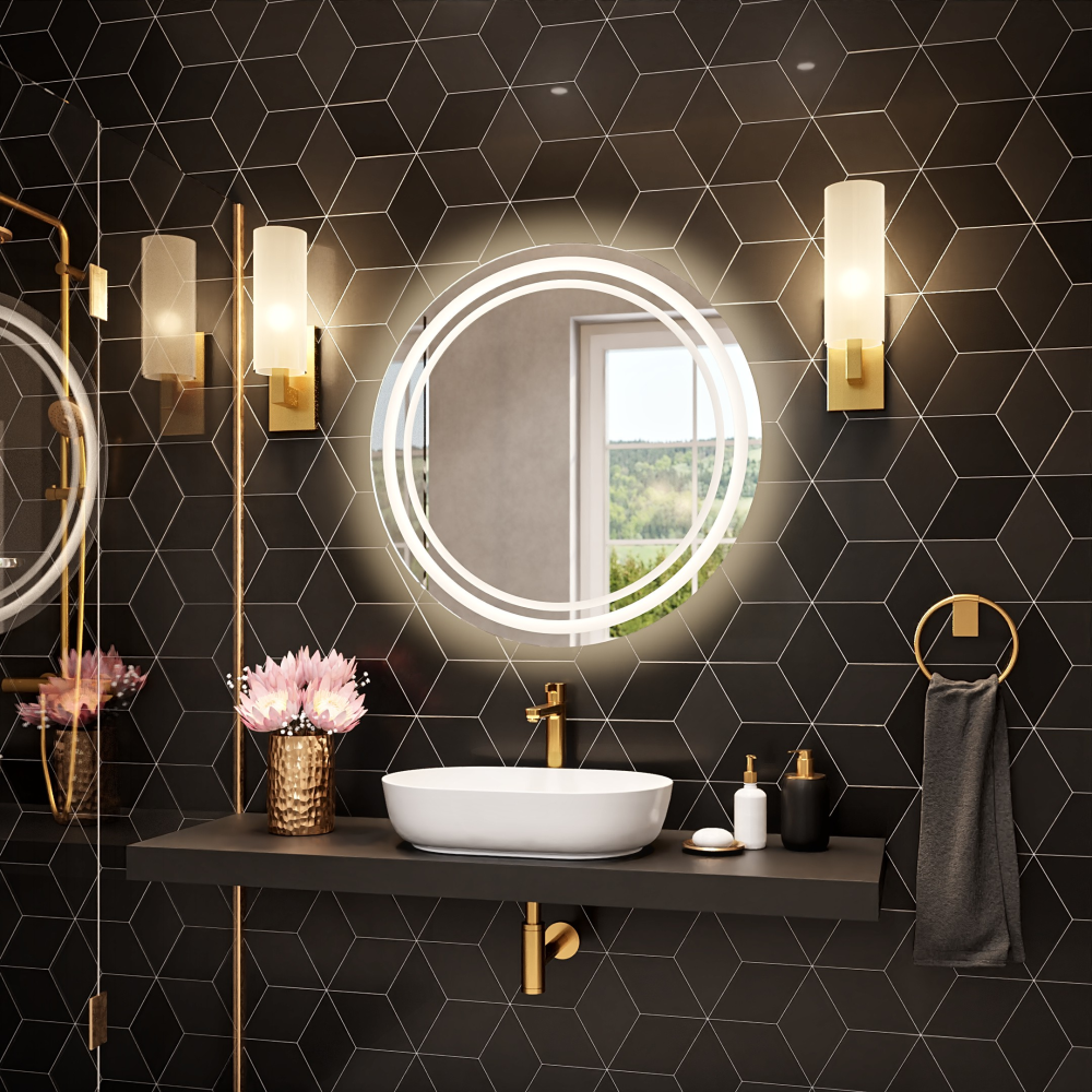 Această oglindă de mărire are un inel LED încorporat în jurul oglinzii și un comutator tactil. Comutatorul tactil dedicat permite pornirea și oprirea ușoară a iluminării LED în orice moment. Oglinda oferă o mărire de 3 ori a imaginii. Diametrul total este de 15 cm = (12 cm centru + 1,5 cm pe ambele părți este o bandă LED sablată).