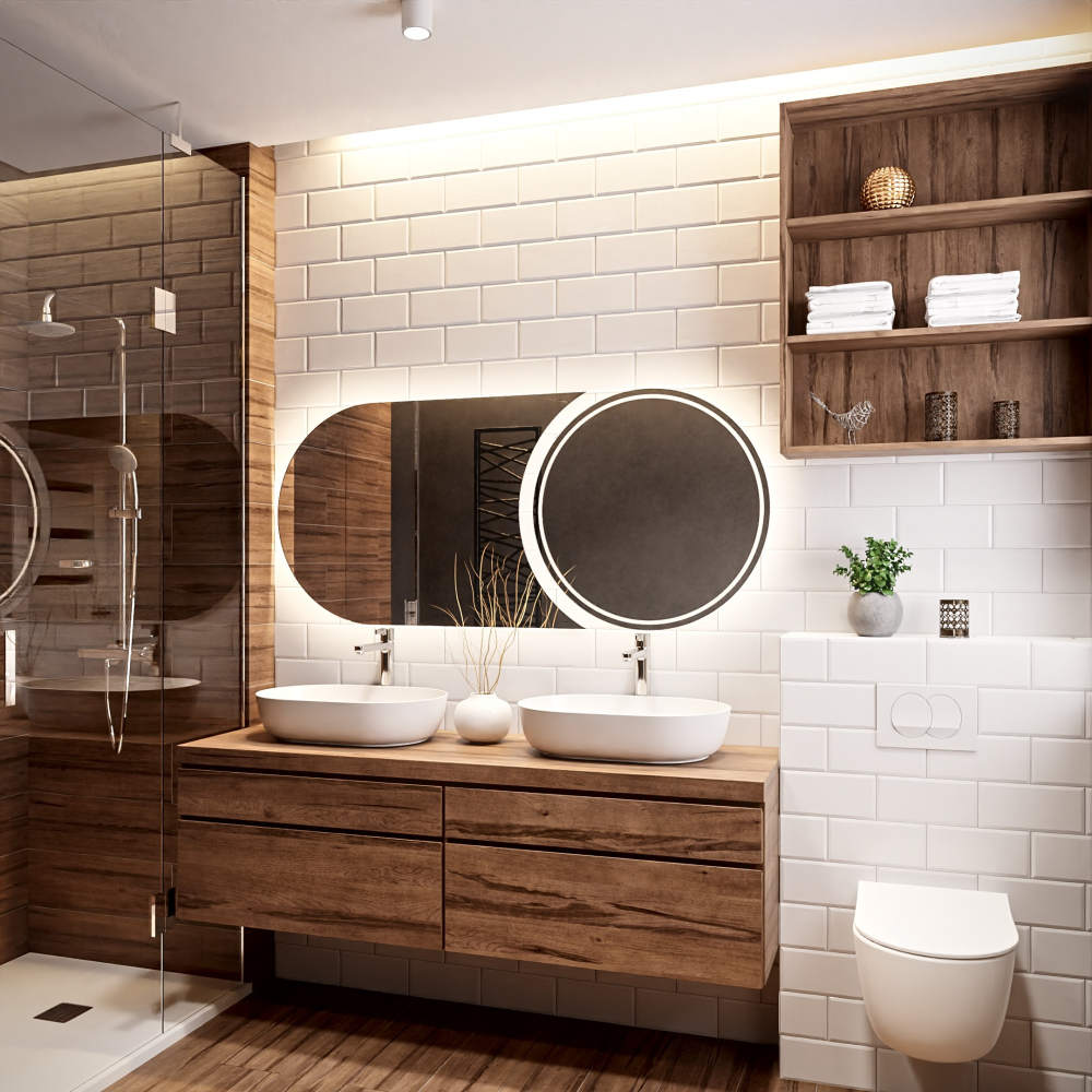 O opțiune de bază în care oglinda necesită o conexiune la rețeaua de 230 V. Înainte de instalare, trebuie avut grijă să se pregătească o conexiune estetică și sigură.