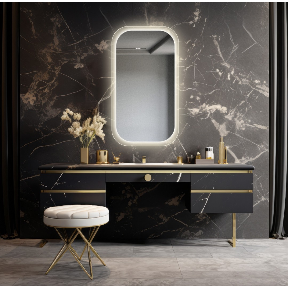 Iluminarea standard creează o aureolă în jurul oglinzii. În cazul alegerii carcasei LED, lumina este închisă într-o carcasă specială, ceea ce înseamnă că nu creează un efect de halou în jurul suprafeței oglinzii. La alegerea iluminatului pentru machiajul zilnic, nu este posibilă selectarea unui accesoriu din această categorie.