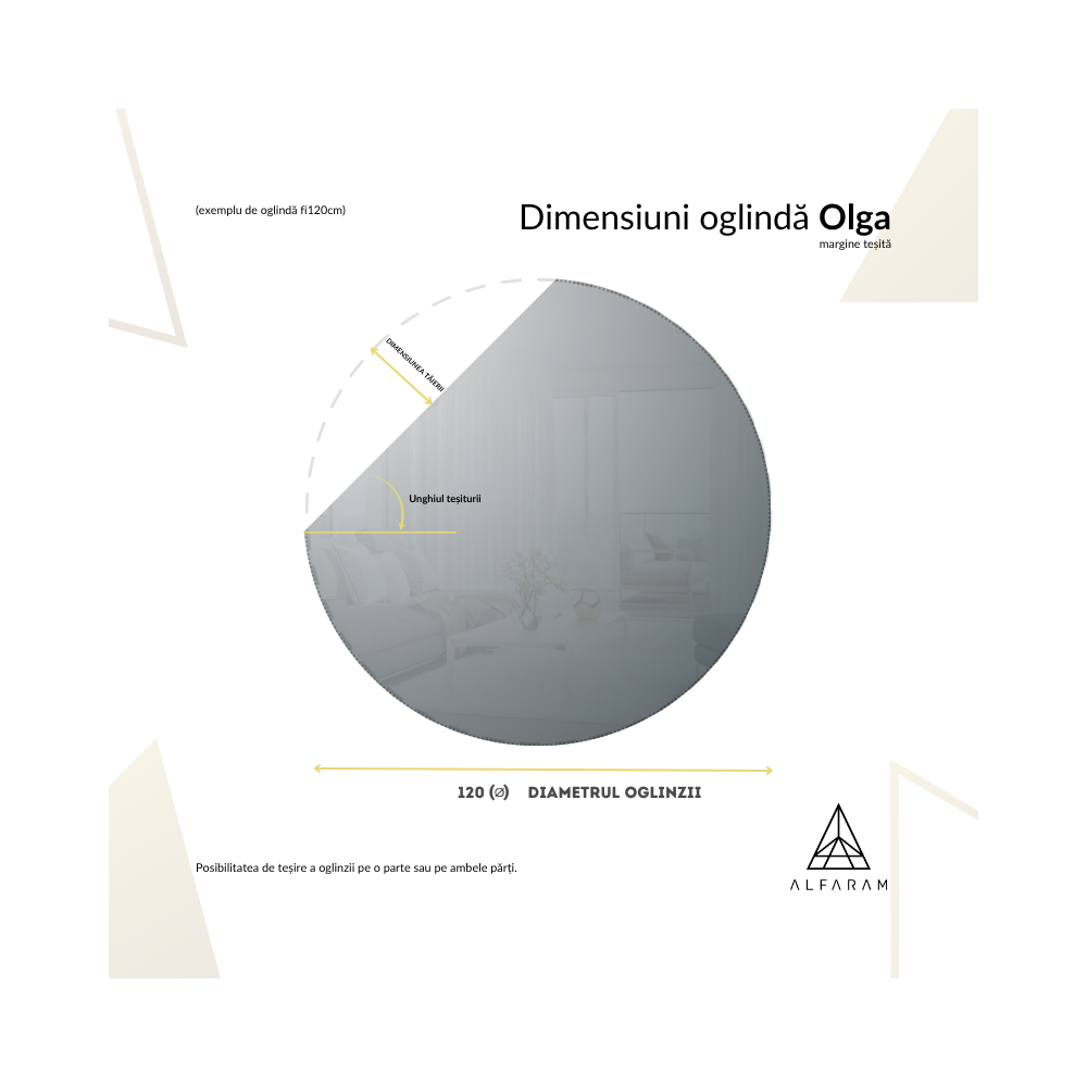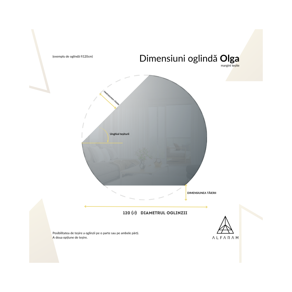 Specificați dimensiunea tăieturii oglinzii în cm, precizând locul la care se referă. De exemplu: tăiere oblică – 10 cm, tăiere în partea de jos – 15 cm.