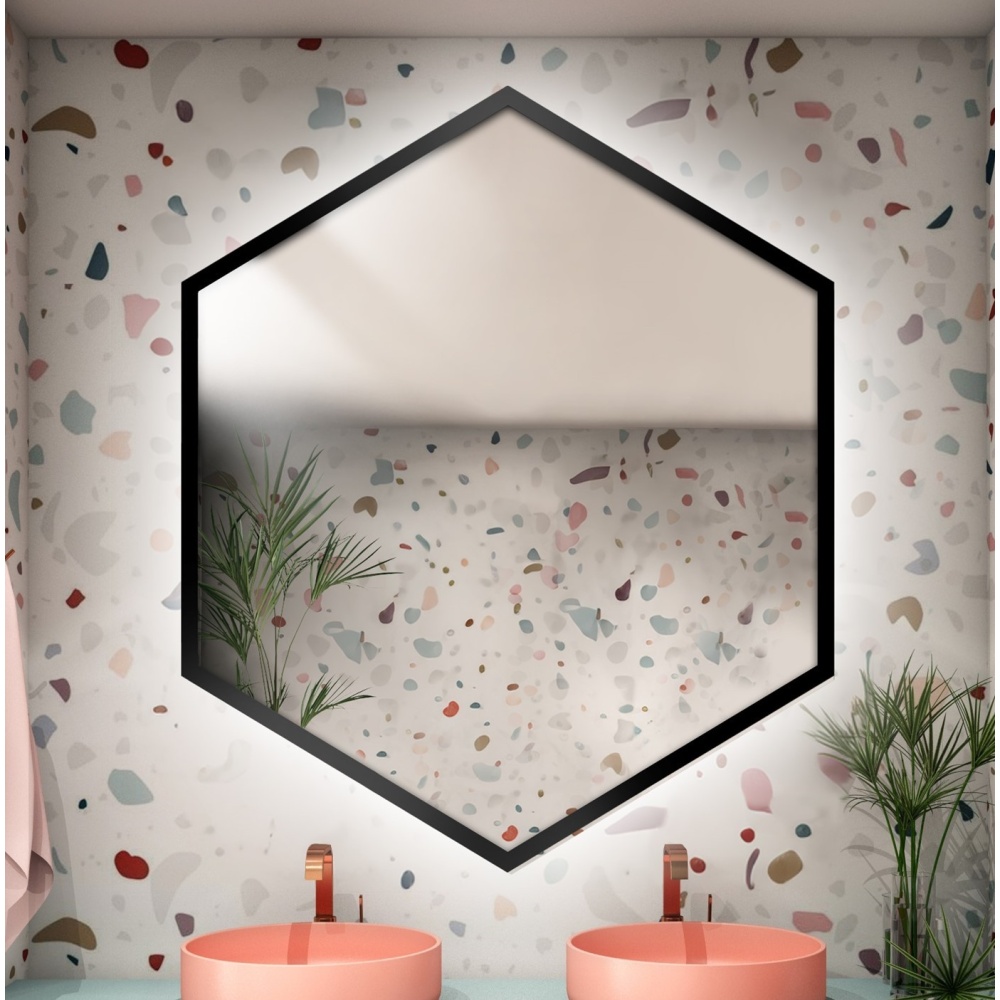 Oglindă de formă geometrică în ramă cu iluminare – HEXA ÎN CADRU LED