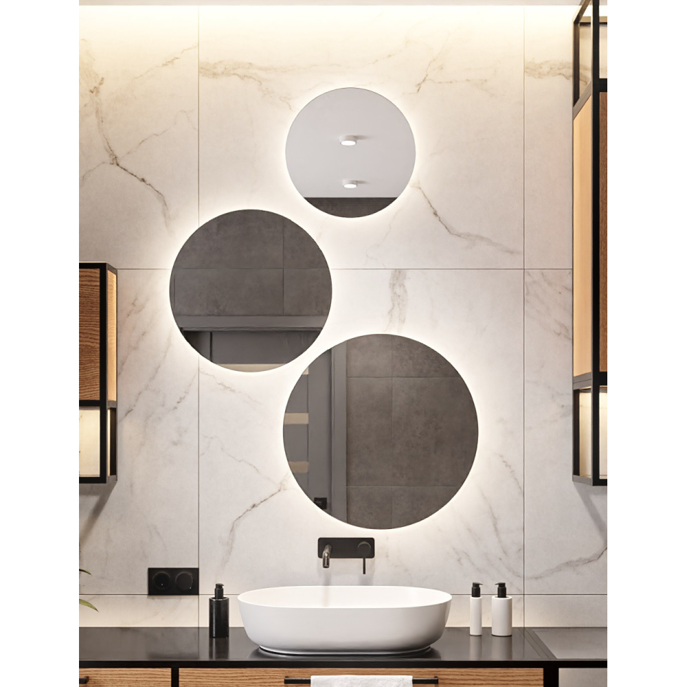 Această oglindă de mărire are un inel LED încorporat în jurul oglinzii și un comutator tactil. Comutatorul tactil dedicat permite pornirea și oprirea ușoară a iluminării LED în orice moment. Oglinda oferă o mărire de 3 ori a imaginii. Diametrul total este de 15 cm = (12 cm centru + 1,5 cm pe ambele părți este o bandă LED sablată).