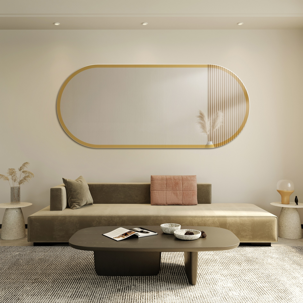 Acest panou elegant de oglindă adaugă farmec și lux în orice cameră. Culoarea sa aurie intensă atrage toate privirile, făcând din oglindă centrul atenției. Culoarea auriu simbolizează bogăția și prestigiul, aducând o atmosferă rafinată unei încăperi.