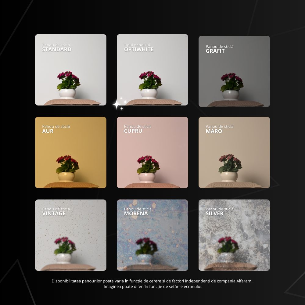Vintage panou este un sticlă care atrage atenția prin structura sa deosebită. Petele fine, neregulate de pe suprafață îi conferă un caracter inspirat din vremuri de demult, aducând căldură și o atmosferă unică în interior. Este perfectă pentru amenajările interioare în stil retro sau industrial, adăugând oglinzii un stil și un caracter deosebit.