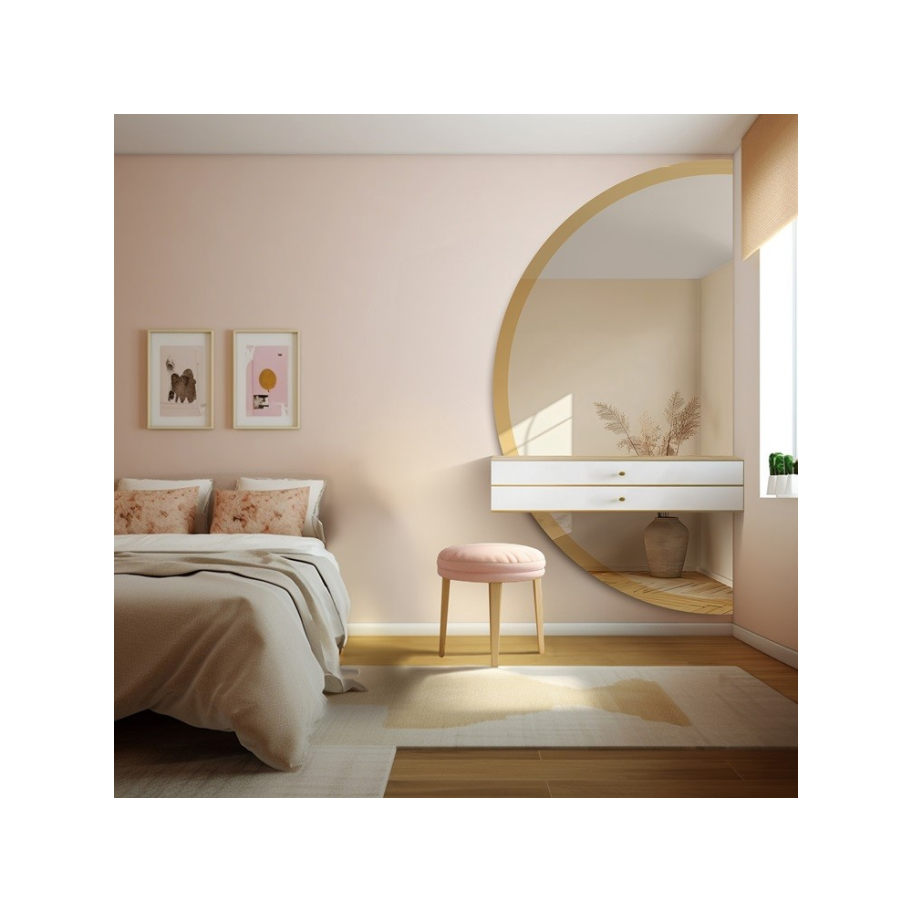 Acest panou elegant de oglindă adaugă farmec și lux în orice cameră. Culoarea sa aurie intensă atrage toate privirile, făcând din oglindă centrul atenției. Culoarea auriu simbolizează bogăția și prestigiul, aducând o atmosferă rafinată unei încăperi.
