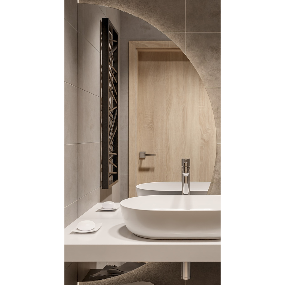 Covorașul anti-aburire are un întrerupător independent, care permite activarea acestuia în orice moment, indiferent de iluminarea oglinzii. Elementul de încălzire este amplasat în partea centrală a oglinzii și elimină eficient aburul, asigurând o reflexie clară. Din motive tehnice, covorașul nu poate fi instalat pe întreaga suprafață a oglinzii.