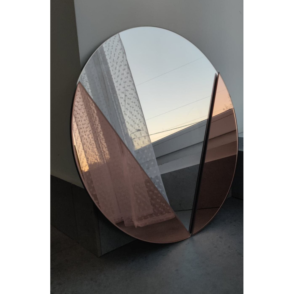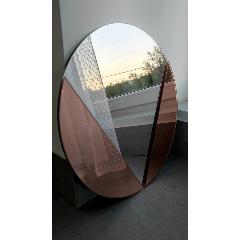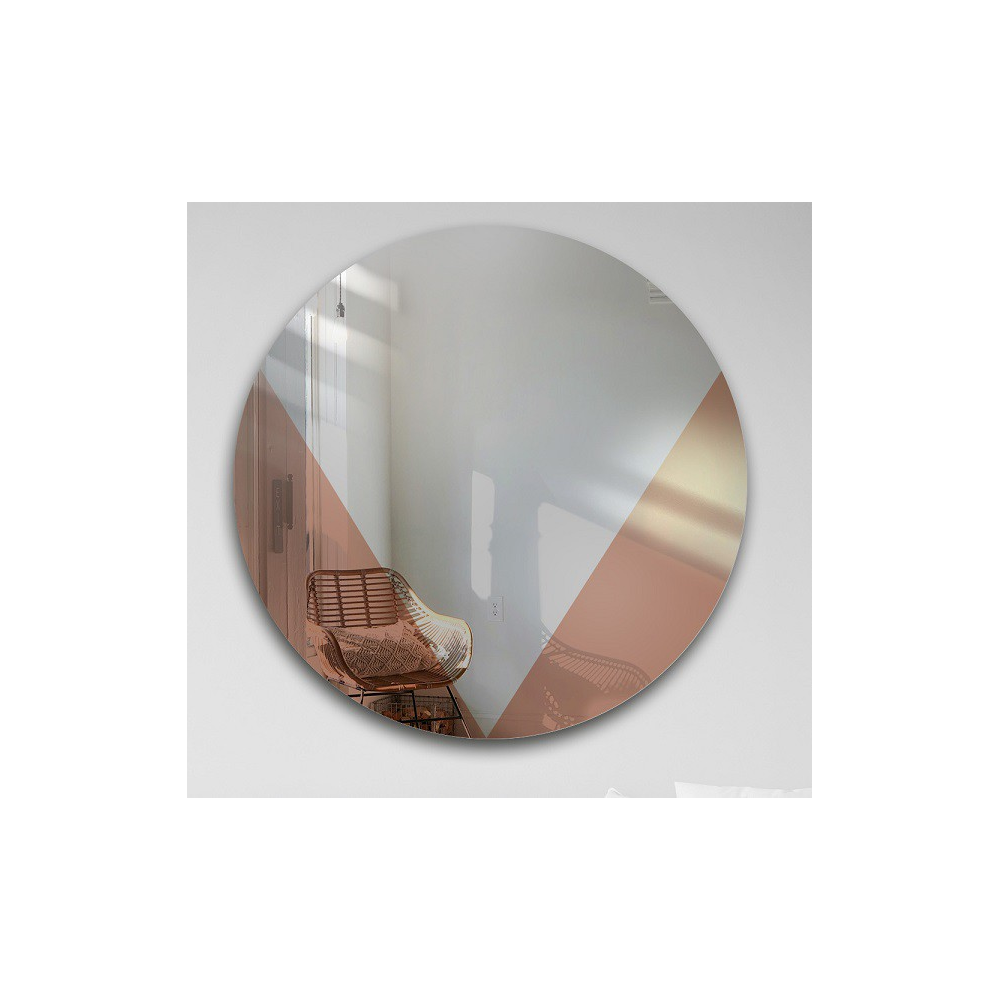 Oglindă decorativă rotundă cu panou din cupru auriu roz - LOLO