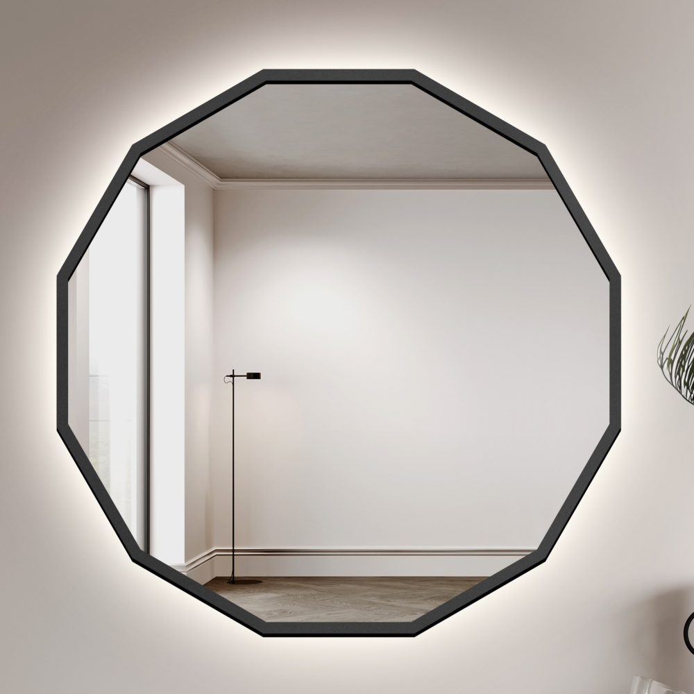 Oglindă multi-unghiulară cu ramă neagră din MDF - WIELO LED - culoarea ramei la alegere