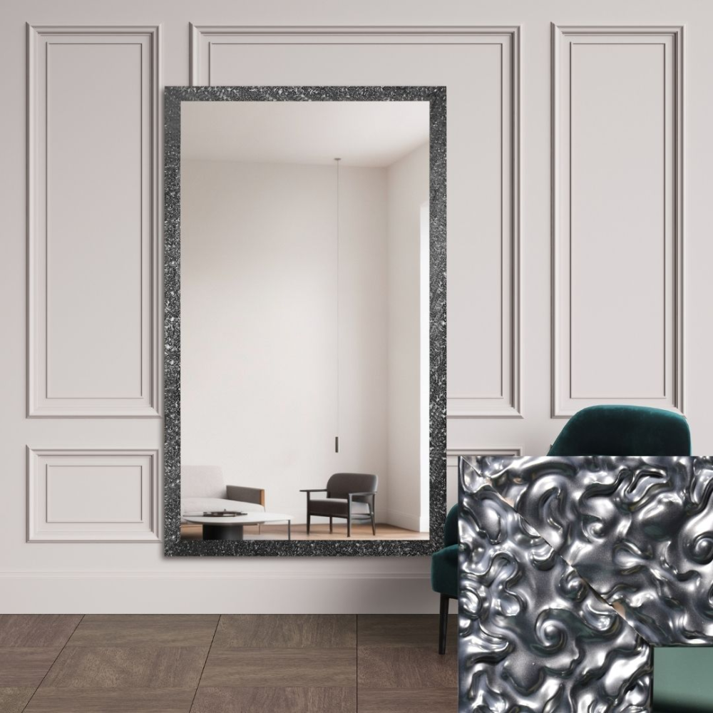 Silver panou este o propunere elegantă pentru iubitorii de detalii unice în decorul interior. Se remarcă printr-un model impresionant, îmbătrânit, în nuanțe de argintiu, care oferă suprafețelor oglinzilor o profunzime și un caracter deosebit.
