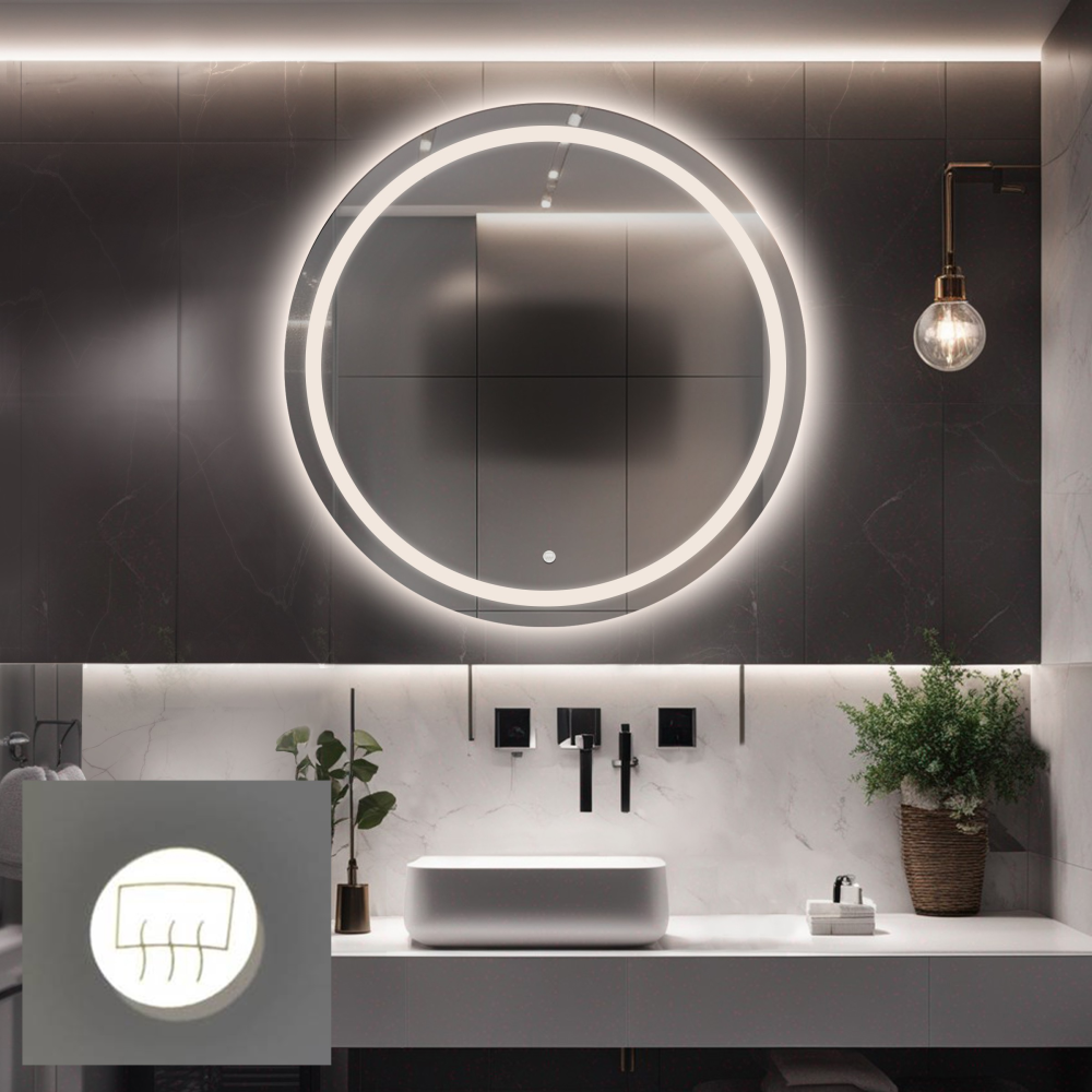 Covorașul anti-aburire are un întrerupător independent, care permite activarea acestuia în orice moment, indiferent de iluminarea oglinzii. Elementul de încălzire este amplasat în partea centrală a oglinzii și elimină eficient aburul, asigurând o reflexie clară. Din motive tehnice, covorașul nu poate fi instalat pe întreaga suprafață a oglinzii.