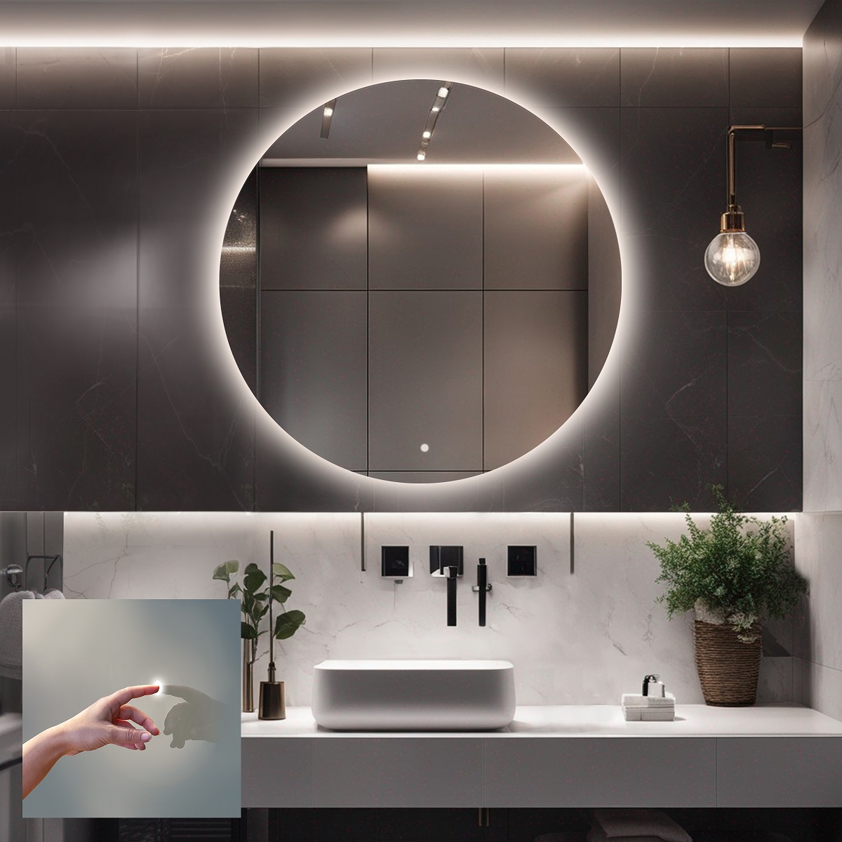 Întrerupător tactil - Întrerupătorul tactil este un dispozitiv inovator care vă permite să controlați iluminarea oglinzii prin atingere. Modulul este integrat în suprafața oglinzii, ceea ce adaugă eleganță și modernitate aspectului general. Iluminarea comutatorului face ca acesta să fie ușor de găsit, chiar și pe întuneric.