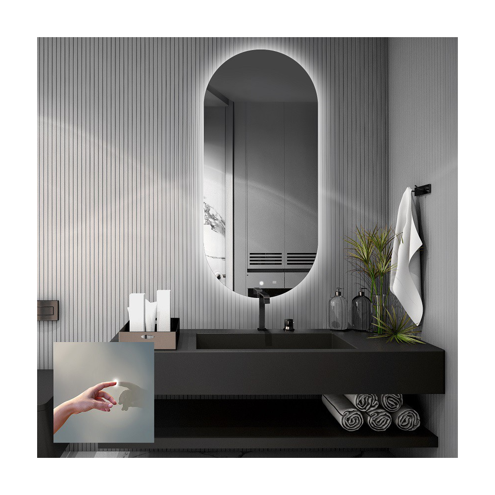 Întrerupător tactil - Întrerupătorul tactil este un dispozitiv inovator care vă permite să controlați iluminarea oglinzii prin atingere. Modulul este integrat în suprafața oglinzii, ceea ce adaugă eleganță și modernitate aspectului general. Iluminarea comutatorului face ca acesta să fie ușor de găsit, chiar și pe întuneric.