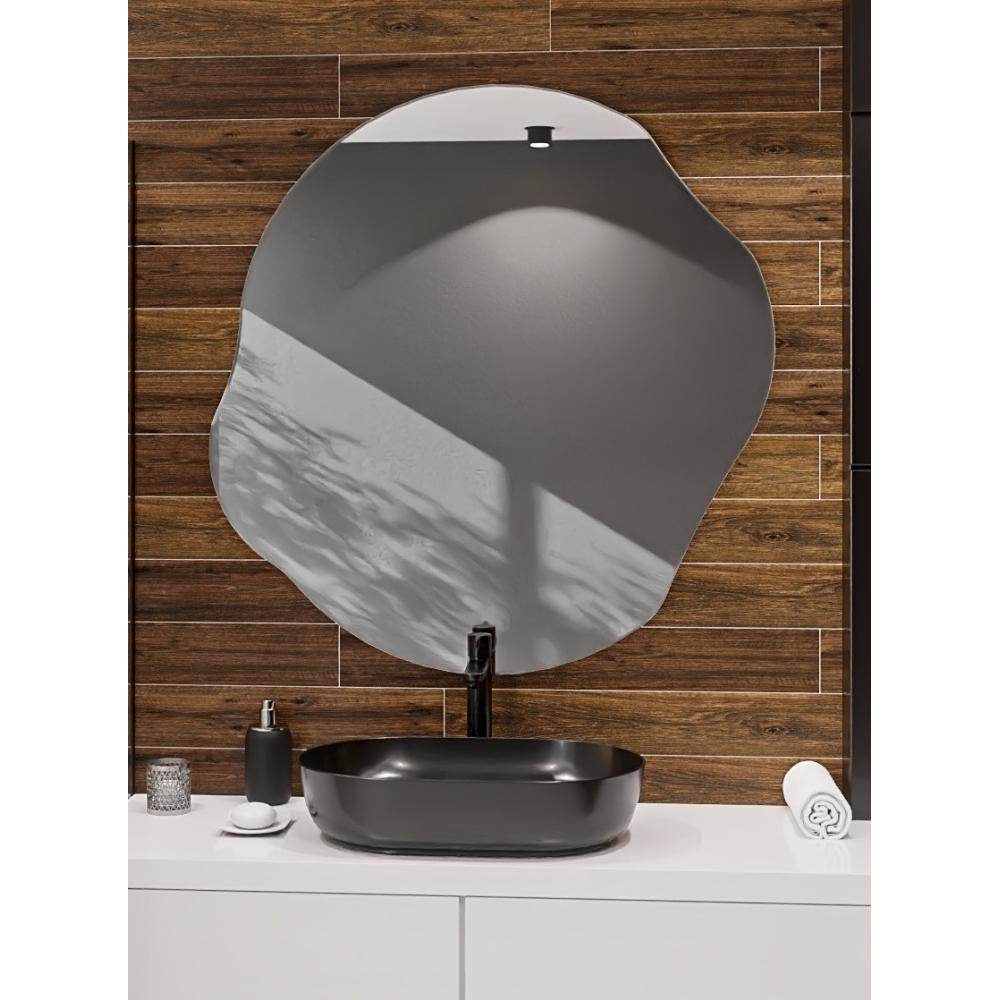Iluminarea cu LED-uri se aprinde atunci când suprafața oglinzii este atinsă în punctul de comutare. Comutatorul este iluminat permanent - indiferent de iluminarea oglinzii. Iluminarea comutatorului face ca acesta să fie ușor de găsit, chiar și pe întuneric.